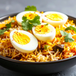 Egg biryani made with boiled eggs, fragrant basmati rice, and rich Indian spices.