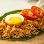 Flavourful chicken rice made with tender chicken, aromatic rice, and mild spices.