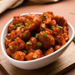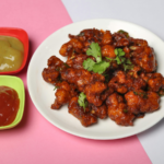 Crispy gobi 65 made with cauliflower florets tossed in spicy South Indian masala.