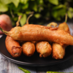 Crispy mirchi bajji made with fresh green chillies and spiced gram flour batter.
