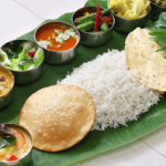 Traditional plate meals served with rice, curries, sides, and accompaniments for a complete meal.